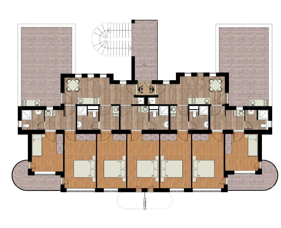 4 személyes szobáink, 2db 2 személyes szobából, valamint két fürdőszobából állnak, kényelmes boxspring ággyal rendelkeznek, illetve Nespresso kávéfőzővel, vízforralóval és minibárral vannak felszerelve. A fürdőszobában hajszárító és ruhaszárító található. Szobáink mennyezeti hűtéssel illetve padlófűtéssel működnek. Továbbá a kényelmet a privát terasz teszi teljessé.